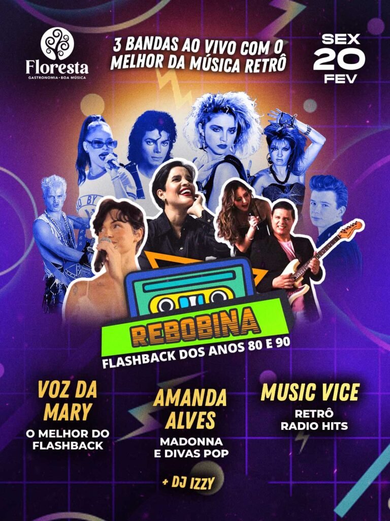 Serão 3 bandas ao vivo, muita nostalgia, pista cheia e aquele som que todo mundo sabe cantar do começo ao fim! QUEM TOCA: 18h — DJ animando a abertura e os intervalos 19h30 — Voz da Mary, com muito flashback pra cantar junto 21h30 — Amanda Alves, homenageando Madonna e as grandes divas do pop […]
