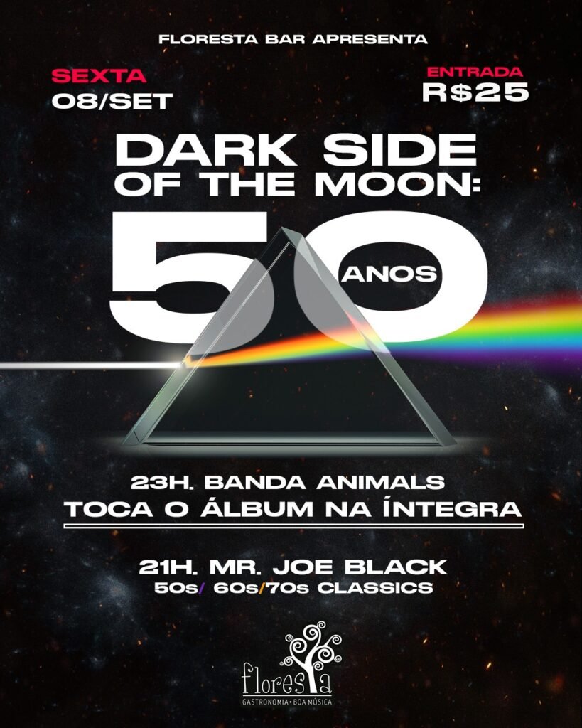 Mr. Joe Black – 21h, Classics anos 50/60/70 Animals – 23h, Pink Floyd ( fará o disco ” The Dark Side Of The Moon” ) na íntegra