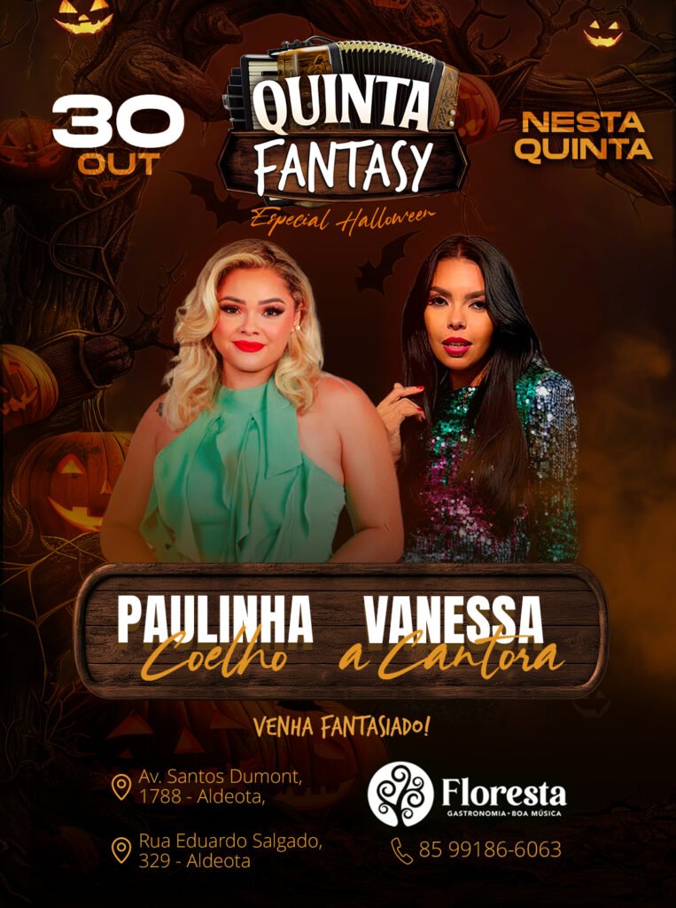 Muito forró na Quinta Fantasy com; 20h – Paulinha Coelho 22h30 – Vanessa A Cantora